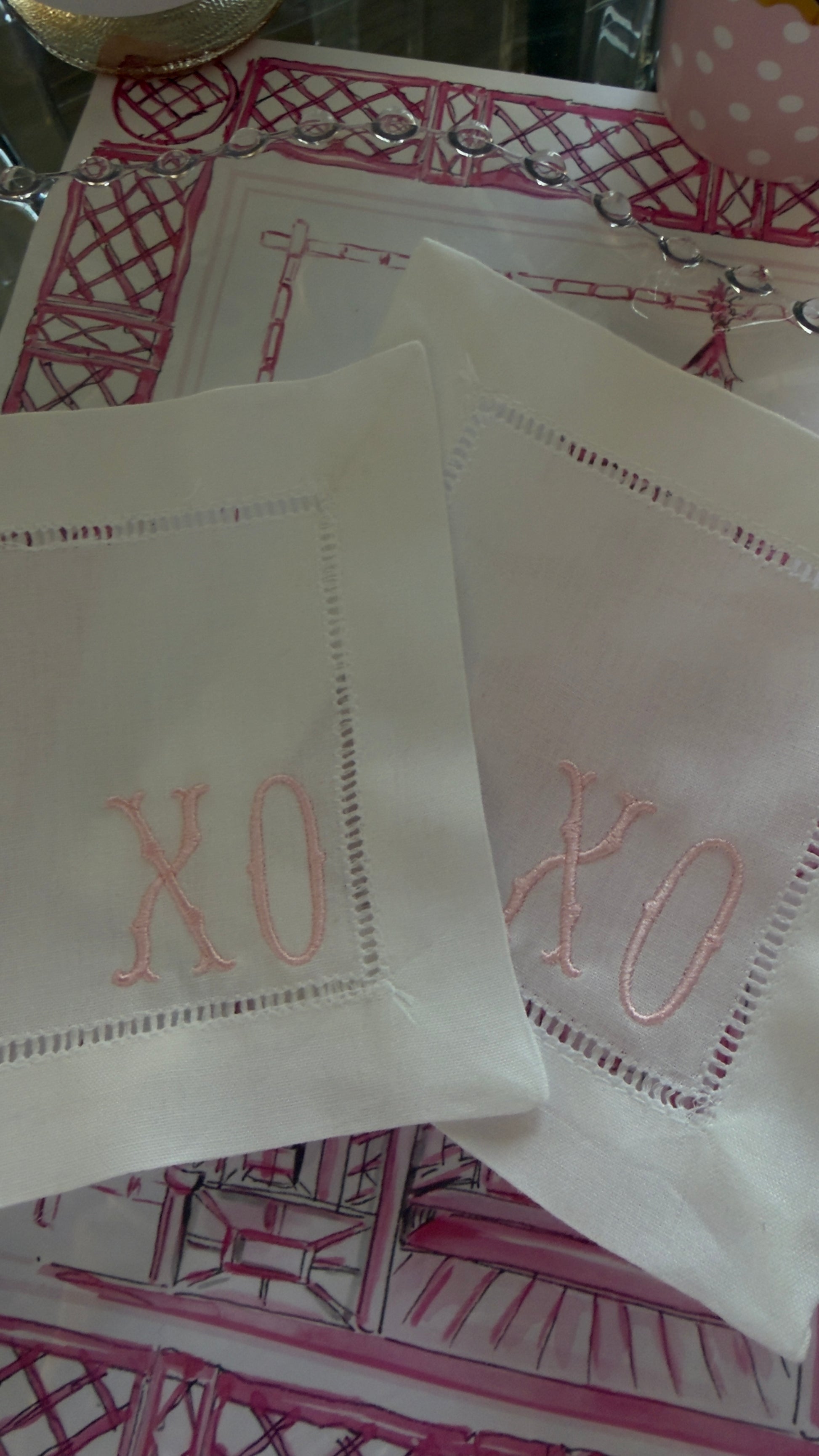 Each 6 x 6 napkin is beautifully embroidered with a playful yet timeless XO design, bringing warmth and whimsy to your table while still feeling refined and elevated. Whether styled with champagne coupes, dessert plates, or a Valentine’s tablescape, these napkins add that thoughtful finishing touch guests always notice.